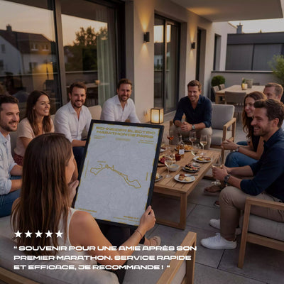 Chaque affiche naît d’une performance réelle. Nom, date, chrono, parcours, chaque détail est intégré avec précision pour composer une œuvre fidèle à votre exploit.